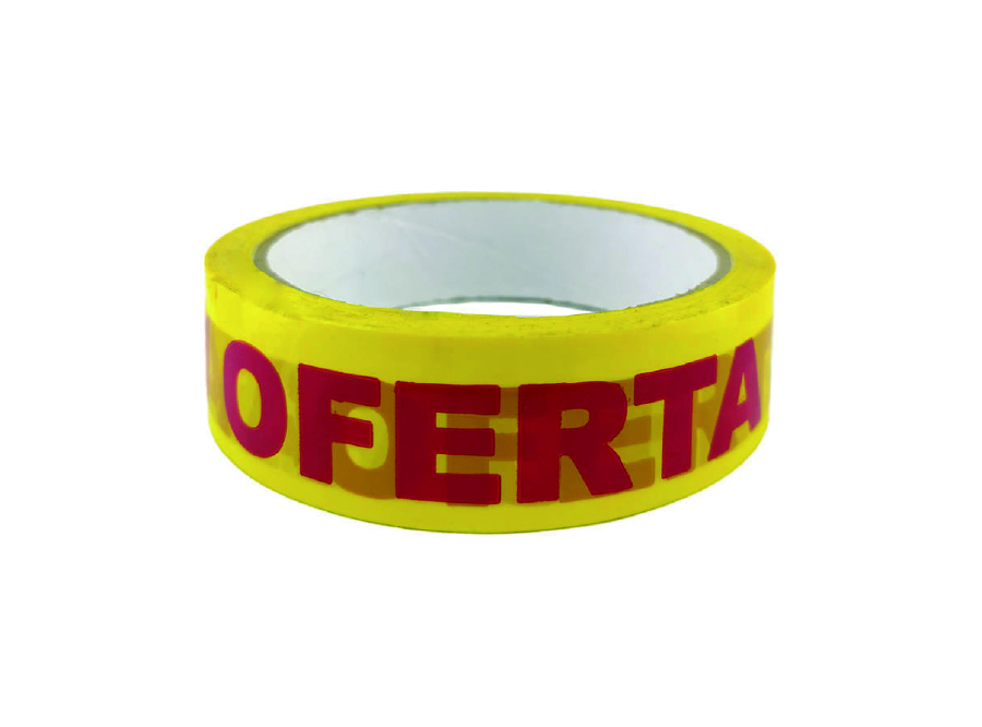 CINTA EMBALAJE IMPRESA 24 X 40 MT OFERTA AMARILLA
