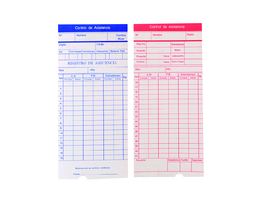 TARJETA RELOJ PQ X 100 UN K310D TROQUELADA