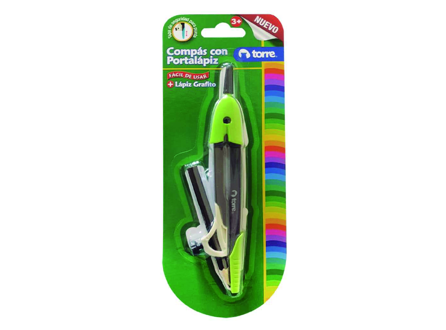 COMPAS PLASTICO C/LAPIZ TORRE TAPA SEGURIDAD