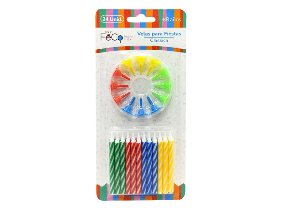 VELA CUMPLEAÑOS SURTIDAS X 24 UN FECO