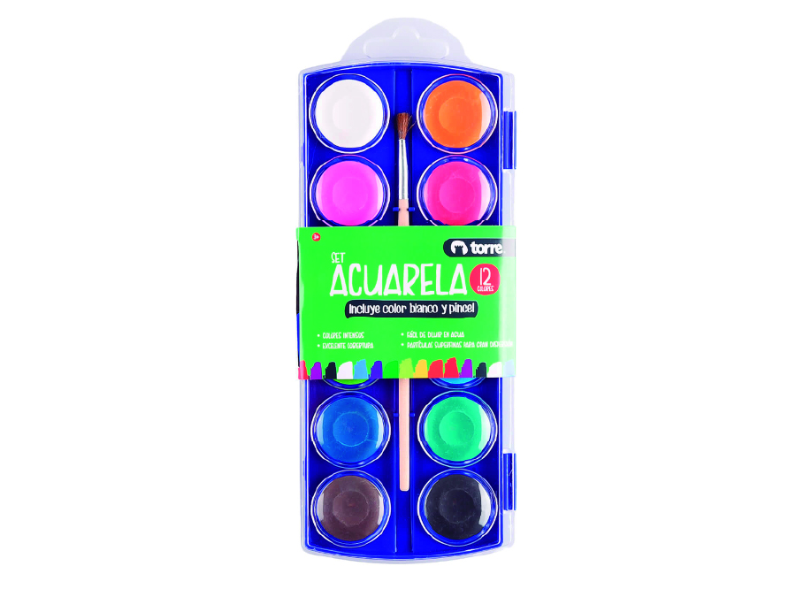 ACUARELA 12 COLORES 30ML + PINCEL TORRE